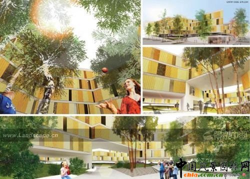 它應該是這樣一種尺度:當孩子們在庭院中玩耍時,房屋中的父母能聽見孩子們的笑聲;當孩子們抬頭仰望時,他們能看清窗口中父母的臉孔。因此設計師認為建筑的層數以兩至三層為宜,最多不超過四層。這樣的建筑高度將允許樹冠從屋頂伸展開去,吸引鳥兒盤旋歌唱,居民也能更接近自然。