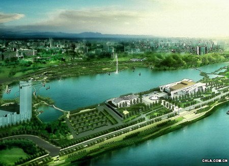 琴臺劇院和音樂廳中間的鏡面水境是滿月的意向。南岸主會場前水域是半月的意向。兩岸聯接堤是三潭映月的意向。“琴臺殘月”是武漢人心里關于琴臺永遠的意向。