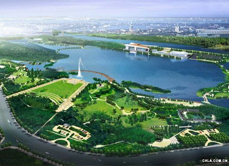 利用武漢的湖泊語言和參考西湖、拙政園等類似環境的造園理水手法,在現有低洼地和漁塘深挖成湖,把湖面還給自然、現代的,我們不再填湖,我們擴湖,還地域本來面目。