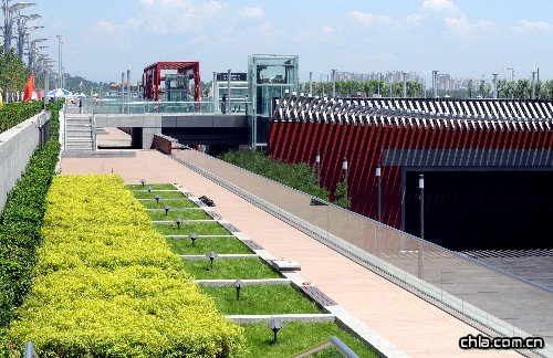 奧林匹克森林公園中心區(qū)下沉式廣場(chǎng)一角(7月6日攝)。新華社記者王頌攝 奧林匹克森林公園中心區(qū)下沉式廣場(chǎng)的南門(mén)(7月6日攝)。新華社記者王頌攝