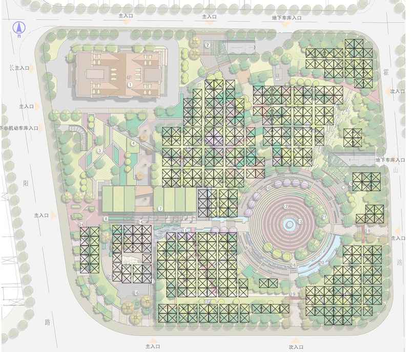 大連路的定位是比較高的1類的應急避難場所,現有的條件跟上海大部分的綠地差不多,場地是平整的,地塊內有地鐵的出入口,另外整個綠地周邊的服務半徑五百米之內,多以商務辦公,居住為主,常住居民相對比較少,所以流動辦公的人員占的比例比較大,周圍的交通和地理條件比較優越。 ![]() 應急避難場所的功能主要分為兩塊,一塊紅的是應急指揮工作的,以及機動區,作為應急指揮區域,綠色是災民災時安置區域。應急工作區域有很多,比如應急供水供電車的停放區,應急指揮中心,災時工作和機動區,應急的取水點。還有應急物資的臨時堆放和發放處,宣傳點,到災時作為物資儲備發放,醫療救護中心,還有指揮中心,包括整個廣播系統都在里面。 ![]() 總的指標是避難面積兩萬平方米,可以滿足六千個民眾五到七天的短期安置,人均面積大于兩個平方米,另外能夠為附近的民眾提供兩到三天的臨時安置,或者作為一個中轉疏散的基地,最高的避難人數可以達到一萬五千,輻射的范圍是周圍半徑五百米,為人們提供避險避難的場所,另外水源、電部分都結合民防結合其他設施做了考慮。 ![]() 設計單位: