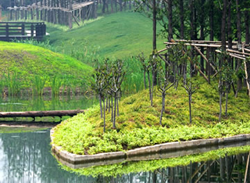 地 點:上海 上海錦繡華城公園是由上海大華集團開發的錦繡華城項目中的一個社區公園,這是一個融自然生態與社會生態為一體的現代公園,在孕育成熟社區,創造生態環境方面有著深遠的意義。奧雅公司全程參與了公園的總體規劃、建筑規劃及景觀設計。 ——我們希冀創造一個自然、生態、休閑、有無數活動可能性的區域。 公園的設計研究人的行為模式,營造不同的空間體驗。三種元素創造了豐富的空間氛圍,當沿任何一條不同的路線前行時,上、中、下立體的變化組合帶來完全不同的空間體驗。樹作為視線的限定元素,成為指示器,給出變化的視線。道路的引導、不同類型的樹的空間指向,清晰的預示將走向哪里,但你永遠不知道下一刻峰回路轉將看到什么。這正是本案最令人激動之處。濕地公園地形最高處約九米,置身高點,會看到這三種元素以怎樣迷人的方式在協同工作。