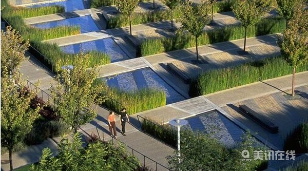 ![]() ![]() 項(xiàng)目概況 地點(diǎn):美國加州山景城(Mountain View) 客戶:山景城市政府 景觀設(shè)計(jì):SWA景觀規(guī)劃集團(tuán) 獎(jiǎng)項(xiàng):ASLA世紀(jì)大獎(jiǎng)?wù)隆⑸骄俺鞘虚L大獎(jiǎng) 面積:5英畝 氣候條件 平均最低溫度:14℃ 平均最高溫度:26℃ 年平均降水量:399℃ 由SGI建筑師事務(wù)所設(shè)計(jì)的查爾斯頓公園挑戰(zhàn)了人們對(duì)公共與私人空間的傳統(tǒng)思維。該項(xiàng)目是由山景城市政府舉辦的一塊26英畝的宗地開發(fā)與5英畝公園設(shè)計(jì)大賽的獲獎(jiǎng)入圍作品。其設(shè)計(jì)創(chuàng)建了很強(qiáng)的視覺形象,為市民提供了一個(gè)急需的公共活動(dòng)場所,同時(shí)又模糊了私人與公共空間之間的界限。 SWA景觀規(guī)劃集團(tuán)與SGI事務(wù)所的建筑師們緊密合作,通過不斷的研究分析,制定的總體設(shè)計(jì)方案獲得了大眾的一致通過。這種創(chuàng)造性的合作產(chǎn)生了兩個(gè)重要的規(guī)劃決策:第一,將公關(guān)員看做是一種景觀;第二,由于基地上原有許多大型建筑物,因此他們通過抬高建筑物,并將1,700個(gè)停車位搬到了地下,而突出了地上的景觀效應(yīng)。在基地的東西兩側(cè)可以看到自然階梯狀的景觀設(shè)計(jì),為東邊的公園與西邊的溪谷之間建立的一種天衣無縫的連接關(guān)系。 該項(xiàng)目是對(duì)一塊宗地的再開發(fā),創(chuàng)建了一個(gè)新的城市公園,為山景城建立了一種新的視覺形象。