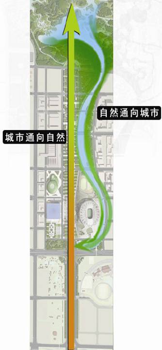 北京奧林匹克公園軸線(xiàn)示意圖 奧林匹克森林公園是奧林匹克公園的有機(jī)組成部分,是奧運(yùn)中心區(qū)重要的景觀背景。其規(guī)劃設(shè)計(jì)既要保證奧運(yùn)賽時(shí)活動(dòng)的需求,又要符合建設(shè)一個(gè)多功能生態(tài)區(qū)域長(zhǎng)期目標(biāo)的需要。奧運(yùn)會(huì)期間,這里將成為北京市帶給各國(guó)代表團(tuán)、運(yùn)動(dòng)員、奧委會(huì)官員的一份禮物——一個(gè)充滿(mǎn)中國(guó)情調(diào)的山水休閑花園。 奧運(yùn)會(huì)后,這片公園將向公眾開(kāi)放,成為市民百姓的休閑樂(lè)土,為北京留下一份珍貴的奧運(yùn)遺產(chǎn)——公園對(duì)改善北京生態(tài)環(huán)境、完善北部城市功能、提升城市品質(zhì)并加快北京向國(guó)際化大都市邁進(jìn)的步伐起到重要作用,是現(xiàn)代意義上的自然與文化遺產(chǎn)。 綜上所述,將公園的功能定位為“城市的綠肺和生態(tài)屏障、奧運(yùn)會(huì)的中國(guó)山水休閑后花園、市民的健康大森林和休憩大自然”。 將“綠色、科技、人文”3大理念在規(guī)劃中真正貫徹落實(shí)是所有奧運(yùn)項(xiàng)目的基本原則。規(guī)劃設(shè)計(jì)伊始,森林公園就將所有的工作納入到3大理念的體系中來(lái),將規(guī)劃設(shè)計(jì)落實(shí)為人文規(guī)劃、綠色規(guī)劃、科技規(guī)劃。 對(duì)于奧林匹克森林公園景觀的人文意義,我們從精神與物質(zhì)的雙重角度來(lái)理解。 精神層面的要求,是創(chuàng)造符合中國(guó)文化氣質(zhì)的景觀格局,使該公園成為具有文化與歷史代表性的人文景觀、生態(tài)景觀、自然景觀。秉承中華文明優(yōu)秀而深厚的傳統(tǒng),以山水格局為特色,根基于相地,形成開(kāi)闊豁朗的宏觀控制體系,兼具中國(guó)傳統(tǒng)人文審美和現(xiàn)代公園活力,與中華傳統(tǒng)人文精神緊密結(jié)合,與世界先進(jìn)文化發(fā)展遙相呼應(yīng),臻至形神兼?zhèn)洹⒁饩成钸h(yuǎn)、清新自由的精神境界。規(guī)劃中對(duì)中軸線(xiàn)重要景觀、山形、水系、平陸、濕地、各出入口、重要景觀建筑等進(jìn)行了深入的研究,并邀請(qǐng)有關(guān)專(zhuān)家進(jìn)行了廣泛的研討。 物質(zhì)層面的要求,是“以人為本”,并且在追求物質(zhì)與精神文明進(jìn)步的同時(shí),還要追求人與自然的和諧。森林公園不僅服務(wù)于奧運(yùn),還要服務(wù)于市民,它將成為一個(gè)充滿(mǎn)活力、市民喜愛(ài)的,集體育、文化、藝術(shù)、休閑、觀光為一體的多功能公共活動(dòng)區(qū)域,為城市居民提供內(nèi)容豐富的休閑場(chǎng)所。因此,重點(diǎn)對(duì)景觀建筑、景觀橋梁、綜合交通、服務(wù)設(shè)施、休閑園地、體育設(shè)施、城市家具、標(biāo)識(shí)導(dǎo)視、照明系統(tǒng)、智能化管理系統(tǒng)、聲環(huán)境系統(tǒng)、應(yīng)急避險(xiǎn)系統(tǒng)等與人的活動(dòng)息息相關(guān)的內(nèi)容進(jìn)行了規(guī)劃設(shè)計(jì)。