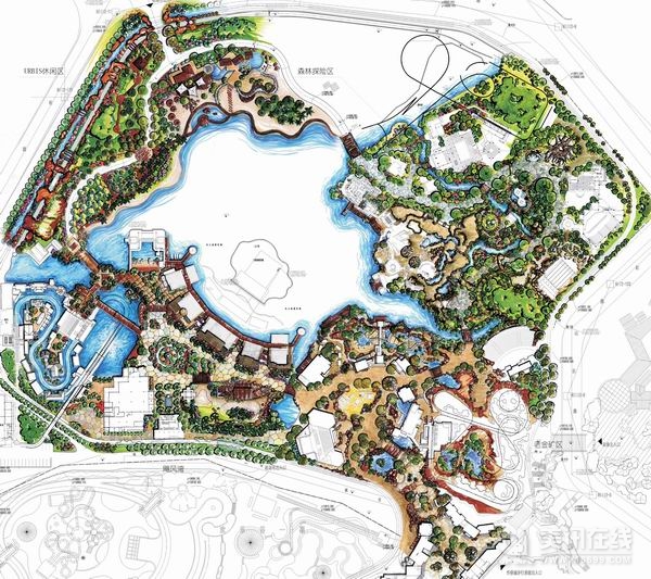 主題公園特色景觀的創造 ——深圳華僑城歡樂谷二期主題公園景觀規劃及施工實踐 一、項目背景 地點:深圳華僑城 1989年9月,“錦繡中華”微縮景區建成。 1991年10月,中國民俗文化村正式開放。 1994年6月,世界之窗開業納客。 1998年10月,歡樂谷一期建成開業。 歡樂谷總占地面積35萬平方米,總投資8億元人民幣,是由華僑城集團策劃建設的繼錦繡中華、中國民俗文化村、世界之窗之后的大型主題公園。 歡樂谷二期主題公園位于華僑城杜鵑山以北,緊鄰一期瑪雅水公園,占地18萬平方米。融參與性、觀賞性、娛樂性、趣味性于一體;是高科技的、主題鮮明的現代化主題樂園。 歡樂谷二期主題公園,通過精心策劃設計施工,2002年5月1日正式對外營業。五一黃金周假期期間接待游客14萬人次,取得良好的經濟效益。同時在主題構思、規劃建設、經營管理等方面,拓展了新思路,打開了新局面。 回顧歡樂谷二期主題公園的規劃建設,有很多值得總結探討的東西。主題公園的景觀與其它類型景觀相比,有其鮮明的特點。從景觀規劃、設計、施工圖繪制,到施工建設有自身的規律。 二、總體布局及主題分區 歡樂谷二期主題公園分為四個主題景區:老金礦區、颶風灣區、香格里拉森林探險區、URBIS休閑區(開業后稱為陽光海岸)。金礦鎮與一期金礦漂流相銜接過渡,主游歷線貫穿四個主題區域。基地中部為中央水體。環園小火車豐富了游客游覽方式。 每個主題景區景觀緊扣各主題故事線。 (一)老金礦區 該區位于歡樂谷二期用地東南角,是一期二期銜接部。 主題背景(故事主線) 十八世紀中期美國西部一個曾經偏辟而美麗的小山谷,一條條富含黃金的礦脈無人打擾地躺了幾萬年,直到偶然被人發現,往日的寧靜打破了,人們蜂擁而至,淘金狂潮再一次上映。人們在流淌著黃金的小河旁搭起了帳蓬,建起了淘金營地,后來就有了中國人開的小飯館,慢慢地銀行、旅店、酒吧、鐵匠鋪、木匠鋪一應俱全,甚至還有了小鐵路……