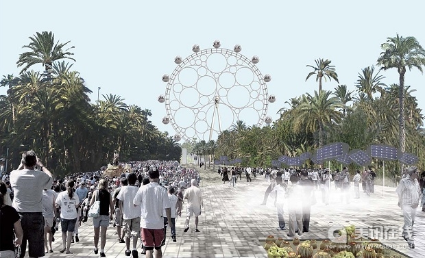 ![]() ![]() ![]() 荷蘭設計公司STAR Strategies + Architecture獲得在西班牙埃爾切市舉辦的國家大賽“Mirador del Palmeral”設計的一等獎。 STAR Strategies + Architecture的參賽作品計劃建造一座巨大的摩天輪,能讓人們從不同角度欣賞到埃爾切棕櫚林的景色。這座巨大的弗雷斯大轉輪也將成為埃爾切歡迎游客的一大標志建筑,摩天輪有16個吊箱。 埃爾切市長Alejandro Soler宣布了本次比賽的結果:STAR Strategies + Architecture獲得了一等獎;日本Sanaa公司獲得了二等獎;Torres & Martínez Lape?a Architects獲得了三等獎。