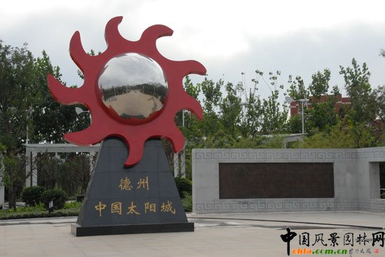 德州園的入口廣場(chǎng)采用對(duì)稱式布局,主入口兩側(cè)栽植兩株體現(xiàn)德州特色的百年古棗樹(shù),沿臺(tái)級(jí)而上是主題雕塑廣場(chǎng),該雕塑命名為“太陽(yáng)之城”,位于全園中軸線之上,以德州深厚的歷史文化內(nèi)涵為基礎(chǔ),結(jié)合太陽(yáng)的抽象造型體現(xiàn)出太陽(yáng)之城的核心主題。德州園的另一主要景觀是太陽(yáng)能科技展廊,該展廊現(xiàn)代材料,結(jié)合太陽(yáng)能光伏發(fā)電、風(fēng)力發(fā)電等高科技環(huán)保發(fā)電技術(shù),形成了一個(gè)既具有園林景觀功能,又能展示現(xiàn)代可持續(xù)發(fā)展理念的景觀小品,充分表達(dá)了太陽(yáng)之城的主題理念。 ![]()