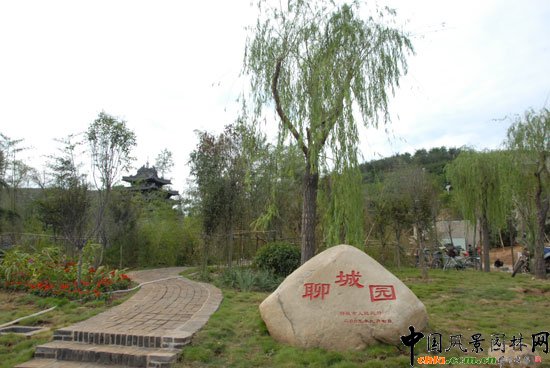 聊城園可以分為東南部的小湖面、中部蜿蜒的溪流以及西北部的假山三部分。整個布局體現(xiàn)了水城的特色:寬闊的湖面隱喻東昌湖,主體建筑采用按照1:5比例縮小的光岳樓,中部的溪流代表穿越水城的古運(yùn)河,也寓意聊城這座歷史文化名城的歷史長河。全園用現(xiàn)代園林景觀的語言和手法,著力表現(xiàn)聊城市“江北水城、運(yùn)河古都”以及“魯西重鎮(zhèn)”的城市特征。