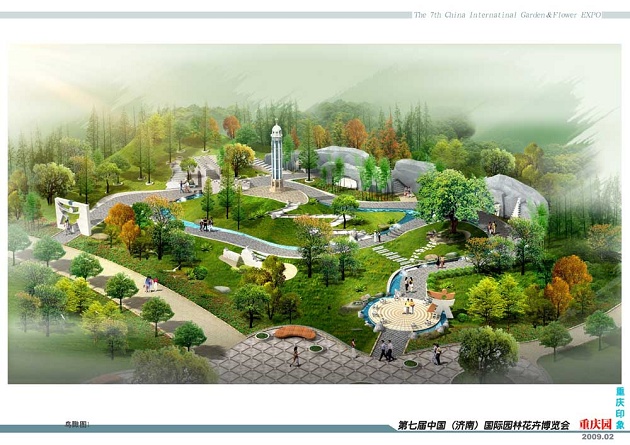 ![]() 重慶展園效果圖 重慶展園 一、設計原則 ●以人為本,促進互動; 二、設計理念 ●時空交融,寓教于樂 每個城市都有輝煌燦爛的歷史,也都有魅力四射的今天。通過歷史的背景,承載現代的文明,用時空交融的蒙太奇手法,最大限度地激發人們的聯想,使游客在游玩的同時享受文化的熏陶。 ●抽取符號,小中見大 提取有代表性的文化元素加以抽象,形成對一個地區、一個城市的高度概括,推而廣之達成對該城市的整體印象。這種元素應是一種方便記憶的符號,是一系列事物的輪廓或剪影,從而小中見大,使游客形成深刻的記憶。 三、設計主題 重慶市是長江上游的第一大城市,是長江三峽的起點城市,她同時也是一個依山傍水、城市壯麗的歷史文化名城。“山中有城,城在山中,山水相依。” 這一獨具特色的山地生態景觀,使其在中國各大城市中獨領風騷。兩江環繞,山水互映,精致恰似盆景的“山城”是人們對于重慶市的最直接印象。 因此,通過對城市歷史文明和現代文明的抽象,詩意化地展現“山、水、城”三位一體的城市美景,構成了設計的主題——“寫意重慶”。 四、設計手法 ● 強調山勢,步移景異 通過對微地形的土石方處理,使基地三維化、立體化,進一步強化“山”的概念,同時采用梯道、城門和植物掩映的微縮山體,來表達“山城”錯落的空間模式。內部道路的設計采用彎曲小徑的形式,豎向上引進高差,強調爬坡上坎和峰回路轉的感覺,同時空間劃分收放有致,并在各個視線節點的位置上布置標志性景觀小品,從而造成曲徑通幽、步移景異的效果,完善了景觀序列。 ●四維互動 山地高差的引入使得游客有了除單一平面游覽以外多種選擇的可能,通過有目的地將平面活動引向三維空間,強調了空間體驗的新奇性和趣味性,游客互為景觀,視線隨時交流,增進了“人景互動”和“人人互動”。 同時,以三峽文化為雄渾的歷史背景,用一系列城市文化遺產來襯托多彩的現代都市文明,從而以游客的自發活動,促使了人、空間和時間的四維互動。 五、景觀結構 景觀分為兩個區域:其一為歷史文化景觀區,另一為現代都市景觀區。歷史文化景觀區為背景區,主要以歷史事件承載城市的過去;現代都市景觀區為前景區,再現當代城市的風采。歷史文化景觀區主要突出雄渾和厚重,場景較封閉;現代都市景觀區主要突出開放和高效,場景較開敞。 六、步行系統 步行系統分為兩個層級:一為環繞場地內部的主要步行流線,另一為分布于場地內的次要步行流線。主要步行流線兩端分別與園博會園區內主要道路無障礙相連,次要步行流線經過精心安排,迂回曲折、上下回轉與主要步行流線相連,為游客提供了“親歷”山城的樂趣。 七、視覺誘導 以場地中部的制高點:抽象的“解放碑”為整個重慶園區的視覺中心,并增加多處節點景觀作為視覺焦點,同時設置視覺通廊引導視線,使游客在不同的場所有不同的視覺體驗。 八、設計元素 ●“巴文化” ●“人人重慶”入口 ●微縮“渝中半島” ●微縮“三峽文明” 長江三峽是中國十大風景名勝之一,它西起重慶奉節白帝城,東到湖北宜昌南津關,大峽深谷,浪高灘險,是長江上最為奇秀壯麗的山水畫廊。長江三峽,人杰地靈,名勝古跡眾多,是中國古代文明的發源地之一。作為三峽的源頭城市,重慶園里有必要展現豐富的長江三峽景觀以及三峽化。 ●抽象“解放碑” ●山城梯道 ●城之記憶——通遠門