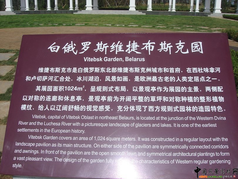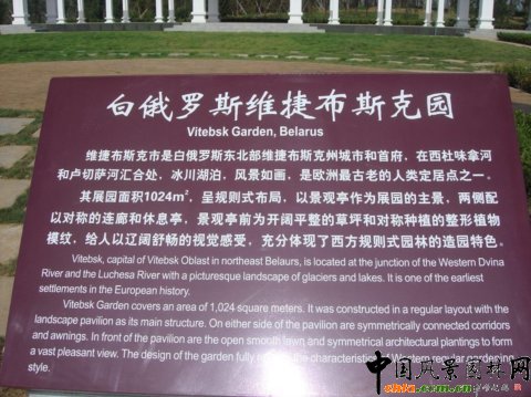 中國風景園林網訊 濟南園博會國際展園位于園博園北部,面積約14公頃,園內分布著21個國外城市的展園,獨特的異域風情和各國先進的園林設計理念、園藝技術在這里得到集中體現,代表了國際園林發展的潮流。 白俄羅斯維捷布斯克園 斯維捷布斯克是白俄羅斯東北部城市,自古以來,維捷布斯克就被稱為"勇士之城",城市徽記上刻畫著騎士高舉長矛和盾牌的形象,如今維捷布斯克是白俄羅斯重要的工業、科學和文化中心。 斯維捷布斯克園占地面積1024平方米,以展現當地如畫的風景為主題,突出渲染北歐古鎮獨特的自然風光。展園呈規則式布局,以景觀亭作為園內主景,兩側配以對稱的連廊和休息亭。景觀亭前為開闊平整的草坪和對稱種植的整形植物模紋,給人以遼闊舒暢的視覺感受,充分體現了西方規則式園林的造園特色。 ![]() ![]() ![]()