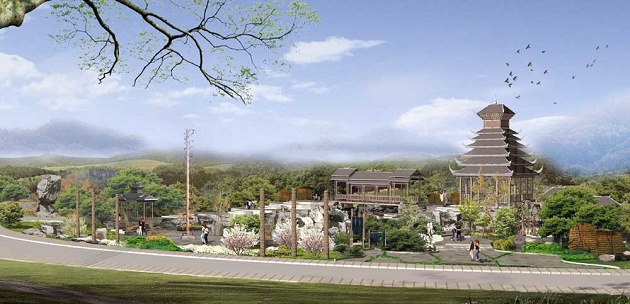 前 言 為響應第七屆國際花卉博覽會,貴陽市園林規(guī)劃設計院承擔了貴州館總體規(guī)劃任務,并與2009年2月派人到濟南貴州館的所在地進行踏勘。本規(guī)劃以國家有關法規(guī)為依據(jù),按照貴州館的總體規(guī)劃要求及深度進行編制。是以提高現(xiàn)代城市生態(tài)環(huán)境質(zhì)量為目標,集中展示現(xiàn)代園林花卉的成就和發(fā)展方向,加強行業(yè)的技術合作和交流,加快城鄉(xiāng)花卉產(chǎn)業(yè)化步伐,營造人與自然和諧共處的空間,倡導健康的現(xiàn)代生活方式,提高人民群眾生活環(huán)境質(zhì)量為宗旨。 按照花博會對室外展區(qū)的總體要求規(guī)劃設計。設計以植物造景為主,突出生態(tài)理念,體現(xiàn)生物多樣性,強調(diào)植物植栽品種的合理搭配與展區(qū)的整體景觀營造,做到人與自然的交流和協(xié)調(diào)以及自然物種之間的滲透與融合,力求新穎、獨特,進行貴州館的總體規(guī)劃設計編制。 貴陽館的規(guī)劃 貴陽館(黔園)的概況 貴陽館(濟南)展區(qū),位于中央湖東岸濱湖大道以西,傳統(tǒng)園林展區(qū)內(nèi),展區(qū)地處道路交叉口,交通便利,一面臨水,環(huán)境優(yōu)越,整體地形以微地形緩坡為主。園區(qū)形狀大體成圓形,總面積為2450平方米。 設計依據(jù) 1.國家行業(yè)標準《公園設計規(guī)范》。(CJJ48——92) 2.建設部《風景名勝區(qū)規(guī)劃規(guī)范》(GB50298——1999) 3.2006沈陽世界園藝博覽會籌備辦公室提供的電子版《規(guī)劃總平面圖》以及相關說明等資料。 4. 貴州人民出版社出版的《貴州侗族鼓樓》 規(guī)劃理念 生態(tài)理念:突出人與自然生態(tài)和諧共生; 文化理念:體現(xiàn)貴州特色的“侗族文化”; 科技理念:創(chuàng)新性、示范性,探索本行業(yè)的科技創(chuàng)新; 特色理念:突出標識性與獨創(chuàng)性,彰顯地域特色。 指導思想 體現(xiàn)花博會“文化傳承、科學發(fā)展”的主題,以生態(tài)文明促進物質(zhì)文明和精神文明的大智慧,展現(xiàn)和傳承傳統(tǒng)文化為目的,貴陽館的規(guī)劃本著以上原則,以貴州喀斯特自然山水地貌為骨架,貴州鄉(xiāng)土植物為血肉,融歷史文化的內(nèi)涵,串侗族風情之主線,全面展示貴州侗族人民熱愛自然、熱愛家鄉(xiāng),與自然和諧共處的風貌。以貴州的水體、山丘、林木花卉、侗族風情等構成的優(yōu)美環(huán)境為基礎,建成體現(xiàn)侗寨建筑遺風的生態(tài)的貴陽館為目標,其內(nèi)包含鼓樓景觀、花橋景觀、禾晾景觀、歌坪景觀、水車景觀、門樓景觀以及貴州特色山水景觀等內(nèi)容的既有民族氣息,又有豐富文化內(nèi)涵的獨特性綜合貴陽館。 規(guī)劃設計的基本原則 (1)、因地制宜原則:根據(jù)現(xiàn)有的地形地貌,按所處的地形特點,根據(jù)需要進行適當改造,并根據(jù)主要觀景視線來源,合理布局。利用一切可能利用的要素,通過地形地貌體現(xiàn)豐富的景觀類型。 (2)、生態(tài)性原則:貴陽館是以巖石、花木為主的專類園。在規(guī)劃設計中,根據(jù)貴州花木特色以及沈陽的氣候條件,采用喬、灌、草、藤搭配,注重配植各種觀葉觀花植物,做到四季有景,使植被更豐富多樣。體現(xiàn)有山有水有植物,山水植物相依,靜中有動,景色迷人的園林景觀。 (3)、藝術性原則:藝術性原則的核心是創(chuàng)造性。貴陽館注重對自然山水和侗族文化的發(fā)掘,從而使貴陽館不論在民族文化上,還是在其景觀上,都有獨到的藝術特色。并充分考慮游人在園中的游覽角度和觀賞點,力求游人可進入、可參與、可享受于其中。 (4)、人本性原則:即是“以人為本”,建貴陽館的目的是提供人們欣賞貴州生態(tài)園林、侗族文化、貴州鄉(xiāng)土花木的地方。因此,貴陽館必須滿足人們對貴州特色文化的需求。貴陽館必須在侗寨的鄉(xiāng)土人文、鄉(xiāng)土素材等方面進行充分的發(fā)掘。 (5)、地方性原則:把握侗寨特征,利用侗寨的特色建筑,通過多種造景手法,體現(xiàn)侗寨的人文與自然互動的生態(tài)特色,創(chuàng)造出具有侗族的特色景觀,使侗族景觀及景觀文化本土化。引入國際上現(xiàn)代園林設計的新理念,創(chuàng)造出新意的特色,使其有別于其它省份園址的特有景色。 設計構思 貴州是一個山清水秀、地理環(huán)境豐富,多民族聚集的省份,具有悠久的歷史及深厚的文化底蘊。此設計本著展現(xiàn)貴州優(yōu)美的自然環(huán)境、地域文化的原則,使游人通過這個窗口,對貴州有一個初步的認識,從而更全面的了解貴州,將古老文明與現(xiàn)代文明相交織的多彩貴州呈現(xiàn)于世人面前。 整個園區(qū)以水池為中心,點綴山石,將自然界豐富的山體形象“縮龍成寸”地集納在有限的空間里,以表達其自然山體的意向。以侗族風雨橋、古樓作為標志性的建筑,并結(jié)合侗家生活場景、娛樂活動和所用工具,設計成景觀小品點綴其間,形成一種濃郁的地方特色。 為了更好的體現(xiàn)貴州喀斯特地形地貌,在現(xiàn)有地形基礎上,創(chuàng)造出高低起伏,錯落有致的景觀效果。 采用以點串線的布局形式,以一條游覽路線貫穿各個景點,展開景觀序列以及空間的轉(zhuǎn)換,達到步移景異的效果。 總體布局 根據(jù)所表達的內(nèi)容以及園區(qū)的組織結(jié)構,將整個園區(qū)劃分為入口區(qū)、歌坪區(qū)、水景區