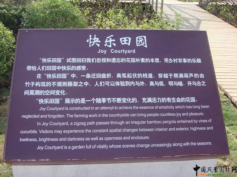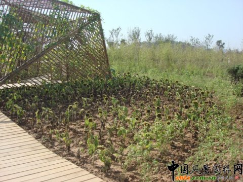 中國風景園林網訊 濟南園博會設計師展園位于園博園北部,面積約10公頃,園內建有9個國內外著名風景園林設計師設計的展園,每個展園面積均在800平方米左右,各展園均運用新的設計理念和表現手法,注重探索風景園林設計發展的未來和方向。 快樂田園 快樂田園由北京林業大學王向榮教授設計,在設計中,運用中國傳統園林中空間的內外、高低、明暗、開合等變化,通過爬滿葫蘆的廊架,迂回曲折、高低起伏的木棧道和滿園的紫色菊花來詮釋"田園"的美景,喚起人們兒時對自然田園的美好記憶。展園由田園小徑、晶狀廊架、影曳花藤、漫山野花、柿樹風韻幾部分組成。園區四周是高出地面的曲折環繞的木棧道,構成田園小徑,小徑上方是晶體狀的廊架,廊架上爬滿葫蘆藤,展園地面上是遍地紫色的野菊花,邊角上點綴著幾株柿樹。整個展園風格清新自然,構圖簡潔流暢,具有濃郁的田園韻味。設計師在設計中還強調了藝術的過程性,通過植物材料的穿插運用,使得花園在不同季節呈現出不同的特點,既充滿活力又富于變化。 ![]() ![]() ![]() ![]() ![]() ![]()