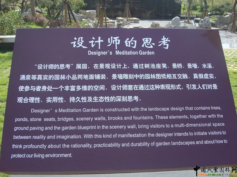 中國風景園林網訊 濟南園博會設計師展園位于園博園北部,面積約10公頃,園內建有9個國內外著名風景園林設計師設計的展園,每個展園面積均在800平方米左右,各展園均運用新的設計理念和表現手法,注重探索風景園林設計發展的未來和方向。 設計師的思考 設計師的思考由濟南園林集團設計師史承軍設計。"一個充實的方案,一張豐富的設計圖,一個嶄新的小園子,小橋流水,木凳景亭……然而多年以后,也許水已不再流淌,橋也不再鮮亮、木凳殘缺不全,景亭不復存在……留下的將是什么?"設計師對園林設計產生了許多思考,通過思考,得到啟示,進而明確了園林設計的目標:"創造永不褪色的風景,世代接替,衍生遺韻"。展園中動態的小橋流水與靜態的地雕、墻雕相對應,鮮活的花木與凝固的樹木雕刻相比照,反映了設計師對園林設計時間、空間、形式和理念的思考過程。展園設計獨特,形式新穎,頗具創造性。 ![]() ![]() ![]() ![]() ![]() ![]() ![]() ![]() ![]()