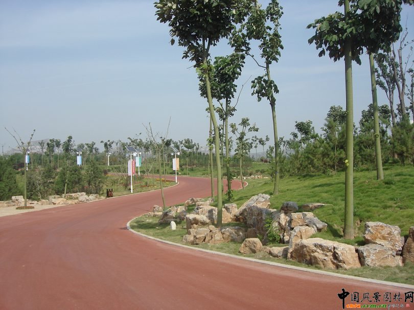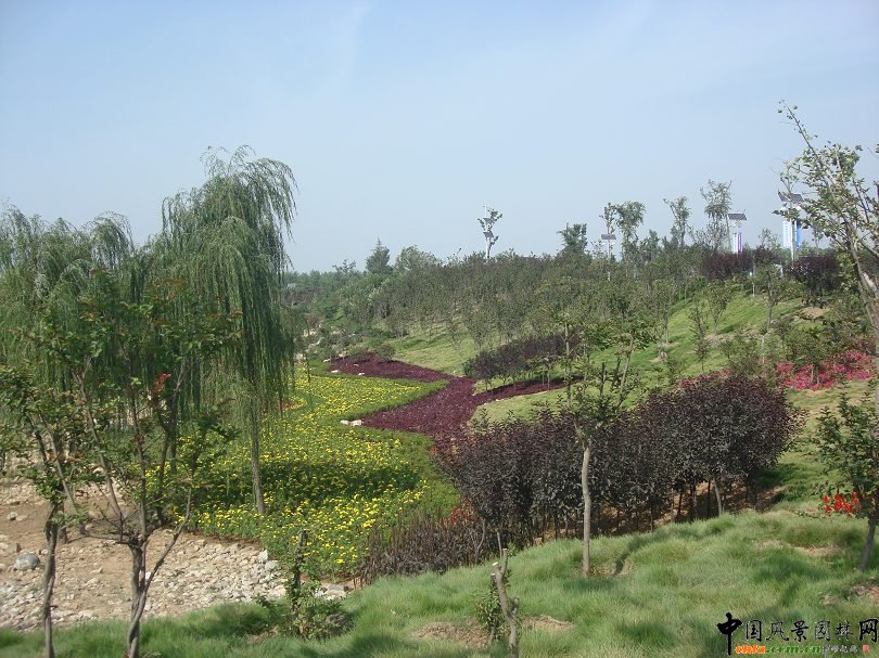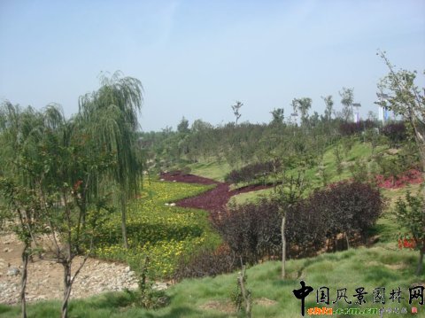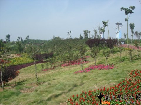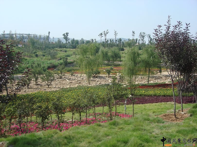 中國風景園林網 濟南園博會臺地園位于園博園北部、天圓廣場與國際未來展園之間。臺地園中央是一處地勢較低的谷地,四周是地勢較高的臺地。低谷中種植了各種鮮花,形成"花谷"。四周臺地逐漸升高,采用自然景石作為護坡,臺地上種植了品種多樣的喬和花灌木,有水杉、柳樹、桃樹、榆梅、百日紅、連翹、迎春等。臺地園是一個充滿山林野趣、以植物景觀為主的開敞式景園。