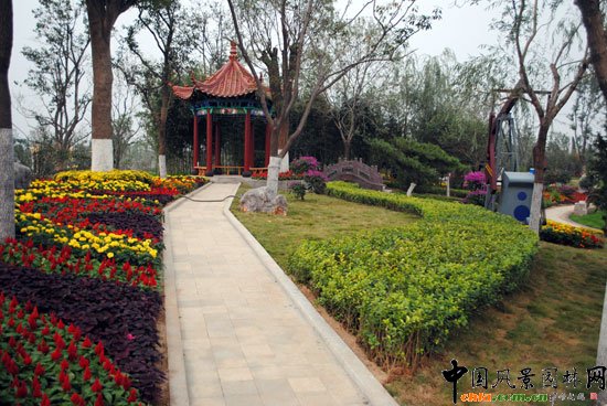 其中的東營園,這個叫做“油城海韻”的景園,是東營的作品。東營既是萬里黃河沿線的最后一片土地,又是人所共知的石油之城。所以,東營景園用心打造了一條彎曲的黃河。為了強調黃河與石油的關系,又設置了一座逼真的紅色提油機。圍繞在主景周圍的,是立于高處的仿古小亭、觀賞石和小橋“流水”。并且配置了,體現東營鹽堿地特色的各類樹種。園區小品與花草的色彩協調搭配,相得益彰,共同構建了黃河入海處的迷人景觀。也展示了東營:古老與現代相融合,黃河與大海相交接的區位優勢和文化底蘊。