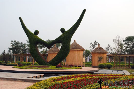 草制作,勾勒了闖關東的歷史長河中,黑龍江與山東人民鑄就的血濃于水的親情和友情。又以流動的水系和糧倉草亭作為典型畫面,烘托了氣氛,表達了立意。這就是黑龍江由北大荒變成北大倉的歷史進程,表現了令人蕩氣回腸的墾荒精神和創業精神。黑龍江景園還通過風景線的劃分,讓游覽和休閑的空間,既相對獨立,又相互通聯。整個景園,展現了東北地區的自然景觀,營造了和諧、友誼的氛圍,體現了內蘊豐厚的景觀文化。