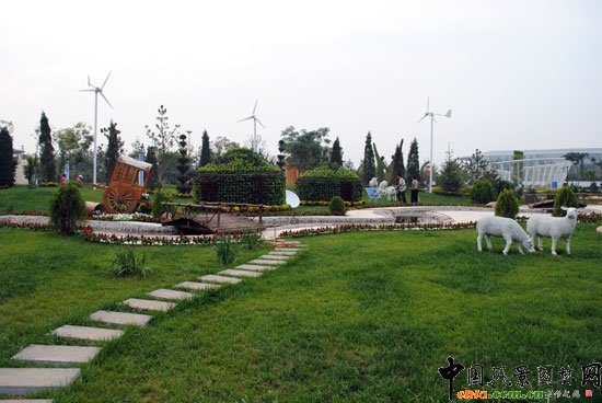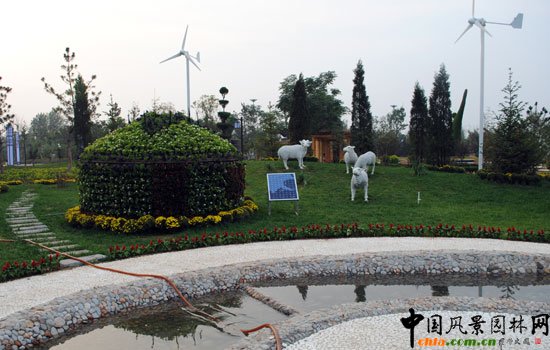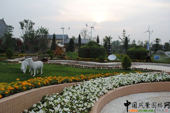 其中,內(nèi)蒙古景園是室外展區(qū)中一處獨(dú)特的景觀。它將現(xiàn)代元素和民族風(fēng)情共冶一爐,共同演繹內(nèi)蒙古的獨(dú)特魅力。景園布設(shè)截取了草原的片斷,意在利用花朵與草原景觀相結(jié)合,展現(xiàn)現(xiàn)代草的意蘊(yùn)。羊群、奶牛、蒙古包等基本原素的使用,將草原風(fēng)情盡顯無(wú)遺。