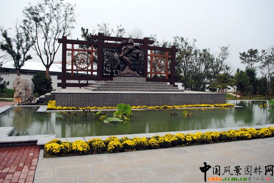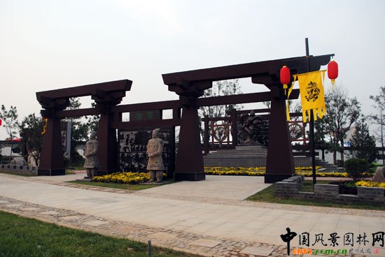 陜西園,秦俑、漢像石、唐樂舞,是秦漢唐三代的文化符號。陜西的西安,正是秦漢唐三朝的京城。因此,陜西景園就致力于突出他們的歷史文化優勢。還用古代的大車輪和