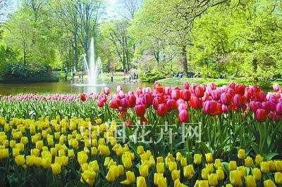 圖三:在不同的郁金香色塊、色帶間留有通道,營造“花間行走”的感覺。 有“世界花后”美譽(yù)的郁金香,以其優(yōu)雅華貴的姿態(tài)、嬌潤艷麗的色彩贏得了人們的喜愛,以郁金香為主題的花展也在各地公園中廣為流行。郁金香的栽培,受栽植區(qū)域、配置形式、下種時(shí)機(jī)等多種因素影響,只有科學(xué)合理的栽培,才能讓其完美地展現(xiàn)魅力。 公園選擇與小環(huán)境營造 舉辦郁金香花展,新老公園各有優(yōu)勢(shì)。新建公園對(duì)于設(shè)計(jì)者來說具有更大的發(fā)揮空間,哪里栽樹、哪里種花,更加自由靈活,而且土壤條件好、病蟲害少,對(duì)郁金香的健康生長有利。老公園景觀形態(tài)更加成熟,大樹、古樹更多,這些樹木的巨大冠幅可有效保護(hù)下面的郁金香不被暴曬,從而延長花期。 如果公園內(nèi)部或周圍有水系并能夠與成片的郁金香相互映襯,景觀效果及郁金香生長的小環(huán)境會(huì)更好。也就是說,要善于利用周邊景物,營造適宜郁金香生長的小環(huán)境。比如樹陰、具有遮陰效果的園林建筑和小品、水系縈繞等。 另外,公園內(nèi)一定要配備溫室設(shè)施,因?yàn)榍蚋?a href="http://market.m.kstxie.cn/ " target="_blank" title="園林市場(chǎng)">花卉受溫度等自然條件影響較大,為保證郁金香和其他時(shí)令花卉的正常花期,必要時(shí)得在溫室內(nèi)培育。如今年春季北京的低溫氣候就使公園內(nèi)郁金香的花期延遲了兩周左右。 荷蘭的郁金香之所以品質(zhì)高,在很大程度上取決于氣候條件。荷蘭全年降雨均勻,只有夏季較為干燥。而夏季正好是郁金香種球收獲的季節(jié),干燥的氣候環(huán)境十分有利于種球采收、減少病蟲滋生。 色塊尺度與配置形式 選擇合適的種植區(qū)域和色彩搭配,是公園郁金香花展取得成功的保證。前期設(shè)計(jì)時(shí),要選擇顯眼且便于游人觀賞的區(qū)域栽植。 要注意不同顏色郁金香組成色塊的尺度。對(duì)郁金香新品種來說,由于還不太了解其適應(yīng)性,在設(shè)計(jì)上就要使用小色塊,以免開花效果不佳影響整體景觀。 設(shè)計(jì)過程中,應(yīng)事先確定栽植列表,包括色彩的種類,每種顏色郁金香的數(shù)量以及搭配方式,郁金香與其他顏色的花卉如何協(xié)調(diào)呼應(yīng)等。各個(gè)國家對(duì)顏色的喜好不同,比如中國比較喜歡紅色、黃色,而日本更喜歡紫色、藍(lán)色等。所以在中國的公園種植郁金香,可以多選擇紅花、黃花品種,與藍(lán)色、白色、紫色等色系的其他花卉搭配。適宜與郁金香搭配的花卉有洋水仙、風(fēng)信子、鳶尾等。 植株高度設(shè)計(jì)也很重要。離游人較近的地方要選擇略矮些的品種,而較遠(yuǎn)處的郁金香則要選擇莖干高的品種,既層次分明、錯(cuò)落有致,又便于游人觀賞。另外,還要注意利用種植區(qū)域的自然地勢(shì)條件,展示郁金香的色帶景觀,并在每條色帶之間留有一定寬度的游人通道,為游客營造一種“花間行走”的親近感。 栽前準(zhǔn)備與下種時(shí)間 郁金香種球正式下種前,要對(duì)公園土壤環(huán)境進(jìn)行測(cè)試和改良。郁金香喜歡土質(zhì)疏松、透氣良好的土壤,以利于種球呼吸和根系生長。由于中國大部分地區(qū)秋季氣候干燥,因此,郁金香秋季下種前要保證土壤濕潤。下種后要注意澆水的量與度,既要濕潤,又不能澆太多,以免地面積水影響根系呼吸。需要注意的是,下種前的工作很重要,種球種下以后再改良土壤就為時(shí)已晚了。 種球的種植密度要適中。郁金香種球最適宜的種植密度是每平方米60個(gè)左右,與之搭配的風(fēng)信子每平方米50個(gè)球,洋水仙每平方米40個(gè)球。多次種植時(shí),每次都要做好種植記錄,保證次年再種時(shí)進(jìn)行地塊的更換。 種球采購和下種要格外注意時(shí)間問題。為了確保郁金香種球正常生根,下種時(shí)間一定要保證。最佳的下種時(shí)間是秋季溫度在9攝氏度時(shí)。 由于中國絕大多數(shù)郁金香種球都是從國外進(jìn)口,所以采購種球時(shí)要留有提前量,確保有充足的時(shí)間選擇質(zhì)量好、無病菌的種球。還要熟悉海運(yùn)流程,根據(jù)海運(yùn)時(shí)間、港口檢疫時(shí)間等,推出最適宜的發(fā)貨時(shí)間。 最后,對(duì)想長期舉辦郁金香花展的公園來說,一次花展結(jié)束后,要及時(shí)清理掉所有種球,整理土壤,為下一次花展做好準(zhǔn)備。 。ㄗ髡邽楹商m簡(jiǎn)德威特花卉種球公司董事長)
