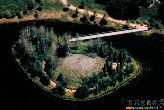 Spider Island, Chicago Botanical Garden, Chicago IL, 1999-2000 邁克爾·范·瓦肯伯格景觀設計事務所(MVVA)在美國紐約和馬薩諸塞州劍橋市均設有分支機構。公司首席設計師邁克爾·范·瓦肯伯格的作品多次榮獲美國景觀設計師協會(ASLA)設計大獎。其中校友谷(Alumnae Valley)改建項目榮膺2006年美國景觀建筑師協會優秀獎。邁克爾·范·瓦肯伯格是羅馬美國學院的設計成員,并于2005年憑借出色的環境設計榮膺庫伯·休伊特國家設計獎。此外,他還擁有哈佛大學景觀設計學研究生院的查爾斯·艾略特教授頭銜,自1982年以來就一直在景觀設計學研究生院教授景觀設計學課程。 項目介紹: 蜘蛛島是一個只有0.25英畝的園林,是坐落在芝加哥植物園(CBG)中的二十三個園區之一。芝加哥植物園是北美利用率最高的公共園林,每年都會迎來數以百萬的游覽者。園內的不同小園林傳達著景觀設計的多種可能性,豐富植物物種也具有科普意義。蜘蛛島捐助者的出資目的是為了紀念自己身為自然學家的妻子。該項目的唯一要求是具有自然的靈魂,并最好選用鄉土植物。對于芝加哥植物園來說,該項目不僅使游覽者有機會欣賞到一個更加自然、非規則式的園林,還強調了更適合本地生境的鄉土植物。 十九世紀六十年代,約翰·奧姆斯比·西蒙茲(John Ormsbee Simonds)把芝加哥植物園密集的水道分成了不同的島嶼式園區。MVVA使用相似的地形處理手法以適應大環境。該項目是如何在繁忙郊區環境中創造一小塊自然式作品的典范。該項目用地形、高點、茂盛的樹木和草地完成了自然式設計的要求。 蜘蛛島是個地形平坦的半島。除了移除一個地峽以形成島嶼,MVVA還堆了兩座小山,將蜘蛛島的最高點上移了十英寸。蜘蛛島附近的水位有5英寸的波動,因此,MVVA設計了應急植物帶以適應這種變化。 蜘蛛島提供了一個簡單、閉合的旅游路線。進入蜘蛛島的路線由兩座山之間開始,在島上半螺旋狀的步道上游覽者可以欣賞到樹木掩映下的廣闊水面。