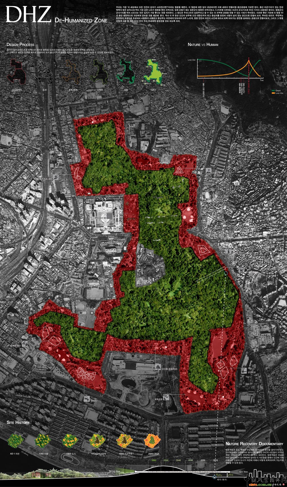 中國風景園林網訊 韓國建筑師柳賢俊與我們分享的新首爾龍山城市公園的方案入圍了設計方案六強。所有的六個方案將合并為一個,成為新公園的最終方案。 無人區 (De-Humanization Zone)