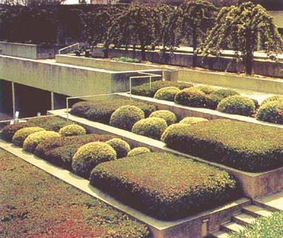 園林景觀設計大師——丹.凱利(dan kiley) 簡介 丹.凱利(dan kiley),美國著名園林設計師。 1912年9月,丹.凱利出生于波士頓,高中畢業后進入沃倫.曼寧事務所學徒六年并成為合伙人。1936年進入哈佛設計研究生院學習園林設計,但兩年后便離開。二戰爆發后,凱利進入工兵部隊服役,并被派往歐洲修建諾伯格二戰審判法庭,1945年回國。 丹.凱利于1951年開設了自己的設計事務所,在其后的數十年間,凱利陸續設計了包括洛克菲勒大學(1955)、福特基金會總部中庭(1964)、第三獨立大街(1963)、美國空軍學院花園(1968)、芝加哥藝術學院南園(1962)等諸多作品,這些作品大都有著規整的幾何結構,相互穿插聯系的空間,反映了凱利初步形成的現代主義風格;到了80年代,丹.凱利接連設計了噴泉廣場(1985)、亨利.摩爾雕塑花園(1988)和聯合銀行廣場(1988)等著名作品,丹.凱利在設計中塑造出的獨特場所精神以及給予人們的那種有別于周圍城市空間的體驗都表達著他對于人與自然間聯系的深刻思考。 主要作品有:米勒莊園、噴泉廣場、達利中心大道步行街、亨摩爾雕塑公園、奧克蘭展覽館室外公園、國家銀行廣場、金氏莊園/京都中心區規劃、庫氏住宅美國空軍學院、洛克菲勒大學、闊寧河濱世紀公園、達拉斯藝術館、林肯表演藝術中心廣場、福特中心大樓中庭、芝加哥湖濱碼頭公園、羅切斯特工學院、獨立大樓第三街區、杜勒斯機場、芝加哥藝術學院南園、華盛頓第十大街環島、約翰·肯尼迪紀念館、格雷戈里住宅、國家藝術館、考瑞爾農莊、標準查特瑞德銀行中庭豪氏莊園、圖溫農場、AG總部大樓花園、樂氏之家、福克斯私家花園、哥倫布環島、凱茨廣場、杜氏大院。