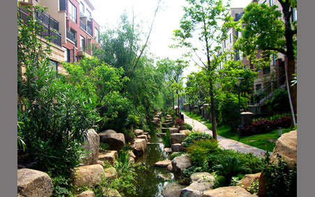 項目占地約35萬M2,是合肥西區最具自然氣息的大型人文生態社區.在人文風情上把現代和傳統成功融合、衍生,逐漸形成現代自然主義設計風格。近萬平米入口湖面保留基地建設前原始風貌,湖中保留大片野生蒲草和原生樹,親水木平臺上自然生活方式已成為新豪宅的標準配置。二期開發的水巷生活和三期深林地帶把現代自然生活方式不斷升級,在環境營造上已實際成為合肥市現代社區的標桿,也是合肥首個榮獲聯合國國際花園社區項目。