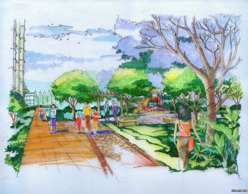 景觀設計融入現代的風情文化特征,整體構思力求生態、休閑、簡潔、現代,營造濃郁的人性化商業空間,形成良好的小區配套服務設置,以提升社區附加值。以生態環境為先導,綜合考慮建筑景觀的和諧共生,并且凸顯主體景觀的標識性,視角上除具有沖擊力外,亦達到了其文化品位的“親和力”。簡約時尚的景觀風格,整體景觀線條以直線為主,同時穿插了簡練的曲線,達到剛柔并濟的效果。景觀色調以大面積暖色為主,點綴豐富色調的馬賽克,營造浪漫風情。