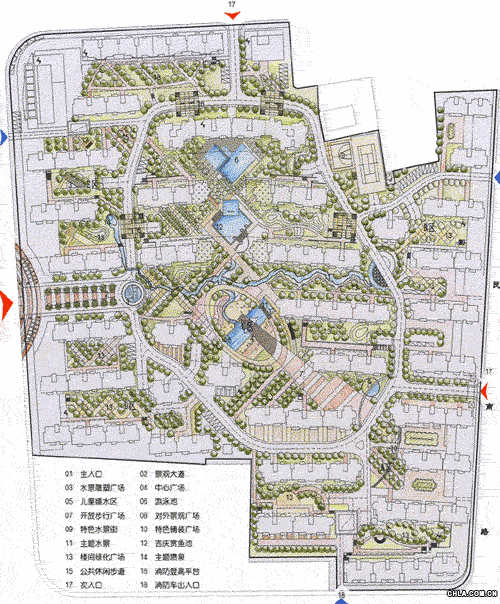 浙江省桐鄉(xiāng)桂花城該小區(qū)位于浙江省桐鄉(xiāng)市,總規(guī)劃用地92820平米,設(shè)計中在解決豎向高差的前提下,用水景來組織空間軸線,通過不同水體形態(tài)的變化來形成小區(qū)內(nèi)不同的功能序列空間。