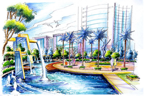 GVL認為現代景觀設計,已經發展到了追求個性,崇尚自然,注重和諧、舒適與人文意境的新階段。現代、大方、簡約、明快的設計,是最能走到未來的東西,因為只有最樸實、自然與和諧的設計,才是最叫人細心品味,以致歷久常新。 GVL在本項目中方案設計在構圖、景觀立面上造型及材質等的運用上致力體現現代、簡約、大方的特征,力求與本地貌與氣候自然融合,設計采用開放式劃分空間的手法,組成具有秩序而不失整體的景觀空間。規劃路線結合建筑布局以簡潔、流暢、明快線條描繪出主園路,鋪以直線等塊面的分割,體現著一種秩序美、韻律美,更能帶給人開闊感,舒適感,包容感,造就了優美景觀的大開間環境。 本案的設計,結合了極富特色的水系、坡地和植物景觀,將環境營造成令人放松、休閑的空間。宜城水岸在2005年成為全國人居環境金牌試點項目。
