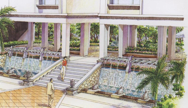 總體設計說明:園林的規劃,遵循“以人為本”的生態園林建筑理念,以都市風情作為主風格,結合坡地綠化、園林景觀、清澈水體及園林小品,給安逸的生活添上無盡的詩情畫意。 花園擁有48%的綠化率,經過園林藝術師匠心獨具的規劃,以開與合、疏與密、掩與露等造園手法,大膽結合超前的建筑設計理念,讓每一扇窗戶外都是一幅美麗的畫、一道流動的風景。 臨水而居,讓人有一種安寧和自在的感受。水在古代哲學中被認為是自然的四大元素之一。在小區里,水永遠是溫柔的主題,從源頭清澈地淌過來,帶上梨花小小花瓣的味道,為靜靜的心劃出無盡的漣漪。流暢綿綿的水岸線、如鏡的水面,把整個園林變得更加浪漫。 總平面圖 園林泳池 閑庭信步 架空層