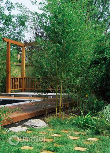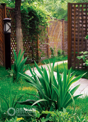 高大的竹林、以及景墻將庭院中的SPA圍合,讓主人可以靜享一份閑適。 彼此借景,兩兩相望 當花園外面只有一條幽靜的小路或者挨著鄰居的院子時,擁有私密的同時保持一定的交流性顯得尤為重要。 花園采用相對開放的護欄,例如階梯形狀、空隙較大的護欄、鐵藝的護欄等。另外種植一些低矮灌木(如密植玫瑰、繡線菊、女貞等)與攀爬植物(如:地錦,也名爬墻虎、薔薇科的爬藤月季以及忍冬科的金銀花等)以及與護欄組合,也同樣可以達到上密下疏的效果。 至于像戶外SPA這樣的院內私密區,可以采用錯落的植物或景墻等構筑物遮擋。