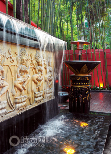 ![]() ![]() 東南亞風情 特色 東南亞庭院最大的特點是最自然的風情,注重對遮陽、通風、采光等問題的解決,且注重對日光和雨水的再利用,從而達到節省能源的效果。所以,外觀一般比較通透和清爽,例如百葉式的白色外墻,綠色的墻面。此外,遮陽的處理也是東南亞庭院的特色。 手法 充分運用當地材料,植物、桌椅、石材等都取材當地,強調簡樸、舒適的度假風情。清涼的藤椅、泰絲抱枕、精致的木雕、造型逼真的佛手、嫵媚的紗幔等。營造東南亞重要手法就是要讓人無負擔地隨性坐臥,舒緩緊張情緒,拋開紛擾的俗世,遺忘身邊的繁雜。泰式三角靠墊,放置在低矮的藤椅中,不經意地讓人放下身段,隨性坐臥。 色彩 偏愛自然的原木色,大多為褐色等深色系,有泥土的質樸,加上布藝的點綴搭配,使氣氛相當活躍,布藝多為深色系,且在光線下會變色,沉穩中透著貴氣。適用藤、麻等原始紋理材料,用色為暖黃色和深咖啡色。 植被選取 在東南亞庭院中,綠色植物也是突顯熱帶風情關鍵的一筆,尤其以熱帶大型的棕櫚樹及攀藤植物效果最佳,最常見的熱帶喬木還有椰子樹、綠蘿、鐵樹、橡皮樹、魚尾葵、菠蘿蜜等,其形態極富熱帶風情,是營造東南亞庭院的必備品,而在亭臺旁最好有高低錯落的植物陪襯,才能味道更足。 本案分析 我們案例中的東南亞風格的庭院也是改造翻新了上海的一處老洋房,庭院中心是開闊的東南亞式建筑,與自然融為一體。綠色植物和絢爛的花朵,烘托出東南亞的自然絢麗。庭院里有金色的泰國佛像,可愛的大象石雕,擺放了清涼的藤椅,靠墊則由紫色泰絲制成,力求每個細節都打造出當地的氛圍。