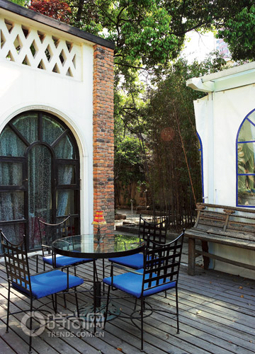 經過改造的老洋房花園,用藍、白兩色構造出地中海風情,又與原有氛圍和諧統一于一體。