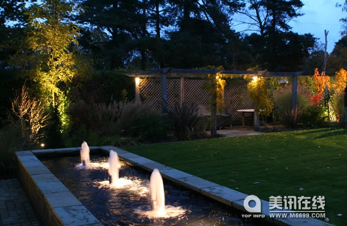 這是一個(gè)設(shè)計(jì)師的花園,我們?yōu)樵O(shè)計(jì)師建造這個(gè)花園,一個(gè)一個(gè)大型的草坪為中心的中型Surrey花園。敦實(shí)的橡樹結(jié)構(gòu)為滿園的成熟且多樣化的植物增加了高度。一個(gè)水景是后方焦點(diǎn),這是一個(gè)又大又長(zhǎng)的水渠,帶有3個(gè)高高的泡鼓噴口,傳統(tǒng)也不失現(xiàn)代感。謹(jǐn)慎的燈光為花園的夜間增添了戲劇色彩。
