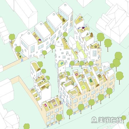 Peter Barber Architects通過在傳統“背靠背”式平臺住宅的基礎上進行改造,使目前的小區密度達到每公頃240戶住宅。