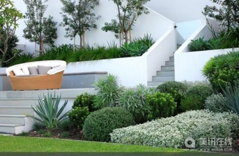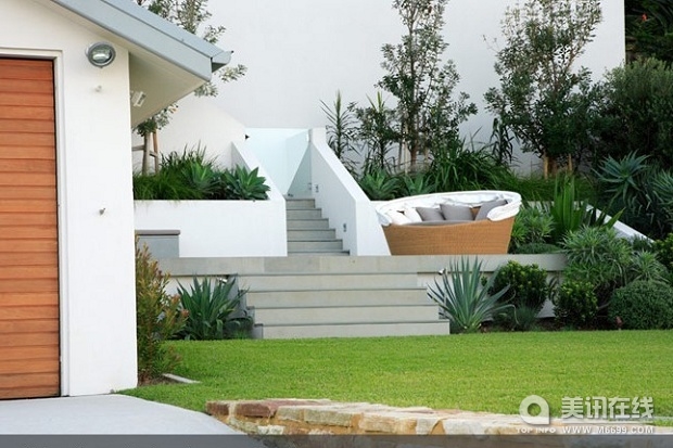 該私密花園位于水邊,是一座漂亮的現代住宅的庭院花園。花園的景色非常迷人,能完全地把人吸引進去。臨水的花園區內栽種了茂密的植物植物種類豐富,顏色各異,有灰色的,有銀白色的。這座花園設計的成功之處在于:簡單又不失內涵。