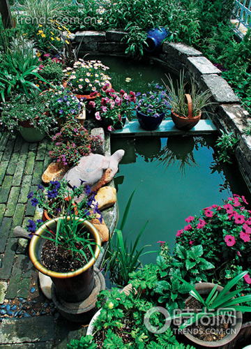 有錢難買水顏色 “有錢難買水顏色”,這是主人很小時候就聽到的俗語。當(dāng)雨水打濕了花園,一切色彩變得愈發(fā)鮮艷起來。無論什么東西只要沾上了水,那顏色就有了生命,顏色也就活了。從那時候起,女主人就迷上了水,迷上了色彩 現(xiàn)在,花園中最大的亮點無疑是最里面的新月形小池,在這個青磚砌成的小水池中,養(yǎng)著錦鯉、金魚還有一些水生植物。池周圍合著各種盆花,花草的倒影更為一池碧波增添情趣。現(xiàn)在,主人非常享受這處小池,她甚至可以在盛夏的傍晚看到池中的小魚跳起來捕捉空中的蚊子! 新月小池正對著書房,每當(dāng)下雨的時候,書房是最動聽的所在,雨絲或者雨滴有著不一樣的和弦,水花濺起無數(shù)個小水圈。江淮一帶的雨季其實是讓人發(fā)愁的,尤其是綿長雨季帶來的陰暗潮濕;而在這個花園里,雨水都流進了新月小池,不會讓花園排水不暢導(dǎo)致積水;平時多余的水汽也被新月小池吸納,不會因為過于潮濕而讓人感到不舒服。