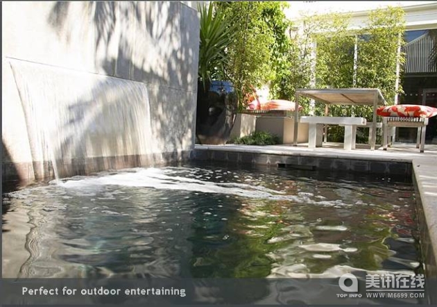 這個年輕的家庭非常希望屋外有一個疊水池,因此設(shè)計中將這個水池引入到了他們的庭院。這個水池不但優(yōu)美并且實用,為整個家庭帶來了樂趣,同時他們可以享受水帶來的輕松氛圍。而庭院中則種植了很多種植物。