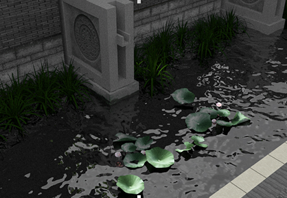 別墅區(qū)的景墻,一為墻上的裝飾,增強(qiáng)建筑的氣場(chǎng);二是作為私家大院的遮擋,使氣流繞壁而行、聚氣不散;三又表明了院落的內(nèi)外有別,營(yíng)造一種和諧、安謐、幽靜的環(huán)境。宅門(mén)入口兩側(cè),各配一塊形似圓鼓的石制構(gòu)件,實(shí)為東方“非貴即富”的門(mén)第符號(hào)――抱鼓石,以彰顯屋主身份地位的等級(jí)差別。 豎鋪勾勒,一色天青的煙雨之地