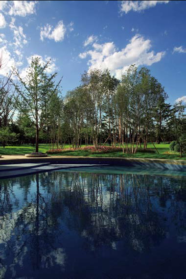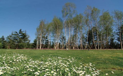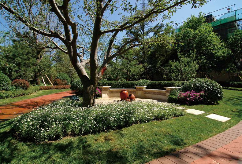 ![]() 紅色與褐色陶土磚搭配出的路面與園區(qū)風格統(tǒng)一 ![]() 宅間小徑郁郁蔥蔥 ![]() 近景、中景、遠景恰到好處 疏林草坪區(qū)后面有雪松,銀杏等,前面點了幾棵山楂、八棱海棠等枝態(tài)優(yōu)美的樹種;白樺林作為一種遠觀效果來展現(xiàn),后面是蜀檜、云杉等作背景來襯托白樺的樹干,下面鋪滿了波斯菊;在生態(tài)溪流區(qū),植物的搭配尤為重要,設(shè)計中分別考慮了四季的景觀,種植了象千屈菜、水生鳶尾、再力花、野慈菇等水生植物,迎春、棣棠等小灌,紫薇、丁香等本土中灌,山楂、九角楓等小喬木,蜿蜒、活潑的溪流穿越其中,結(jié)合石品和駁岸,營造一種親水的氛圍。 ![]() 清爽的木平臺與周邊的花木形成美麗的風景 ![]() 白樺林傳達出浪漫情懷 ![]() 白樺林在水中映出美麗的倒影 ![]() 綠地里的置石處理,點綴得恰到好處 ![]() 小空間也有大景觀 樸實自然的水景小品 ![]() 五重立體景觀在此體現(xiàn)得淋漓盡致