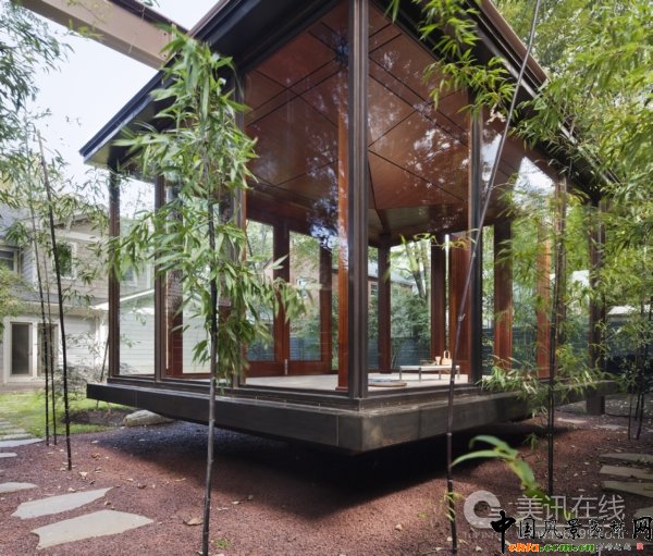 茶室的這個石燈籠結構就像是園景之中漂浮的一顆寶石,而周圍的子能夠起到清凈思維的作用。