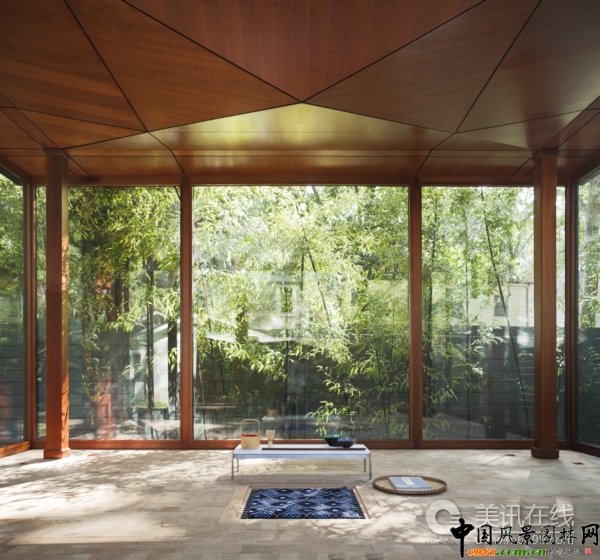 茶室的這個石燈籠結構就像是園景之中漂浮的一顆寶石,而周圍的竹子能夠起到清凈思維的作用。