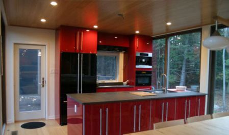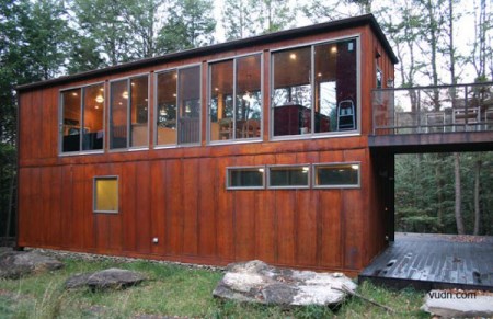 Johnson Creekwee House別墅是Alchemy建筑師已完成的預制項目,位于美國賓夕法尼亞州的Honesdale地區。別墅由一個較大可容納大多數人的日常活動空間和一個可提供睡覺的小的空間組成,其兩端由一個露臺橋梁提供連接連接。同時主要空間提供的是一個幾乎完全沉浸到壯觀和繁茂的景觀位置。