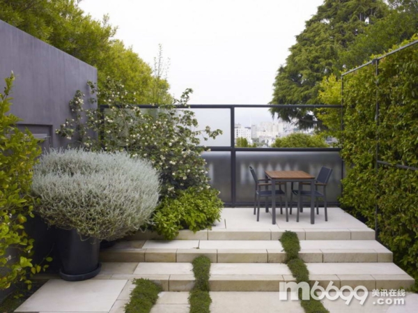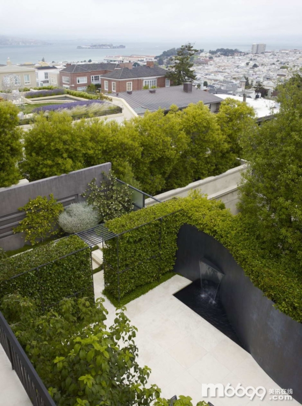 這個舊金山市的小型私家花園被看作是日常生活的“室外架構”。由于規模不大花園被建成了一處沒有屋頂的建筑,劃分成若干個彼此相連的室外“房間”,房間擁有綠色的墻壁和無窮高的天花板。