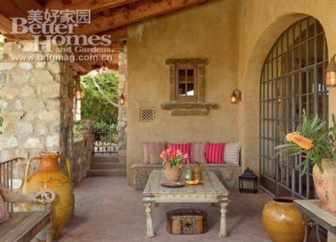 “意大利人喜歡贊美溫暖和色彩。”室內設計師比利·施普林格說道,“因此色調要選擇活潑、帶點黃色的赭色、金紅色、暗檸檬黃和陶土般的桔色,然后搭配天藍、深藍色。”陶器品、餐巾、桌布、裝飾花、耐用的布藝都可以用來展示。