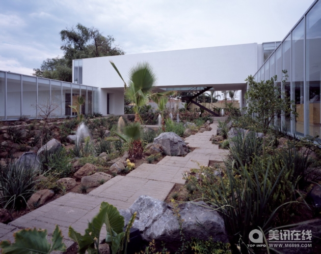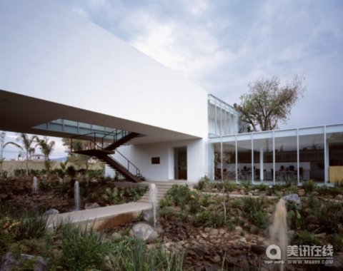 ![]() 建筑設計:CC Arquitectors 這個項目有四個主要的成員,第一個也是最重要的成員是我們的客戶,他們提出了概念及想法。在接到這個工程后,我們試著建造一個有寓意的建筑,并將客戶的想法蘊含其中。 這個工程的第三個成員是景觀設計者,花園是這個工程的靈魂。綠色的植被和形態各異的石塊是整個園林設計的點睛之筆。走在花園的小道上,參觀者和公司的員工都可以直接感受到植物為周圍環境帶來的勃勃生機。 將這個項目的市場性放在一邊,我們希望傳達一種同自然接觸的概念,于是我們將辦公室的墻設計成了玻璃墻,使其成為花園的一部分。 兩個藝術家被邀請加入到項目的設計和施工中,Luciano Matus設計了建筑中心的樓梯,這是整個建筑的脊椎。