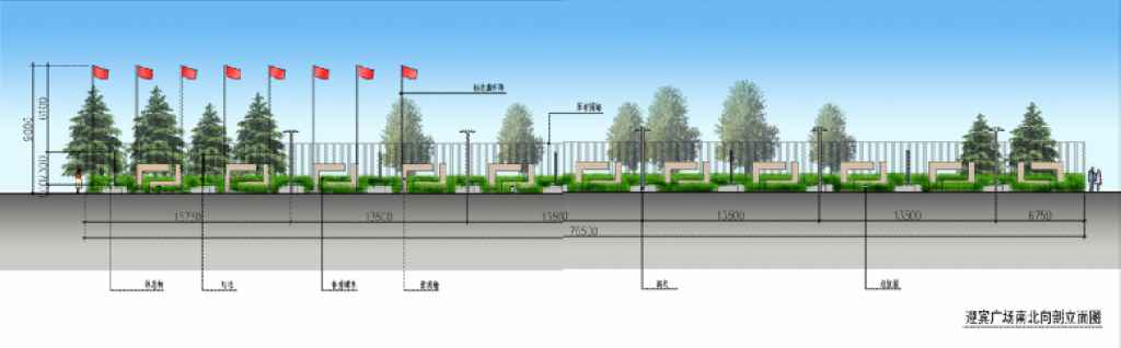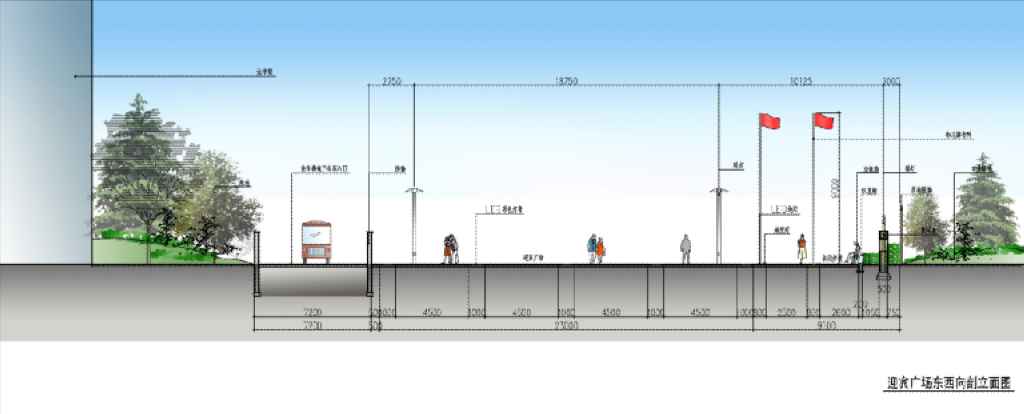 迎賓廣場(chǎng)東西向剖立面圖: ![]()