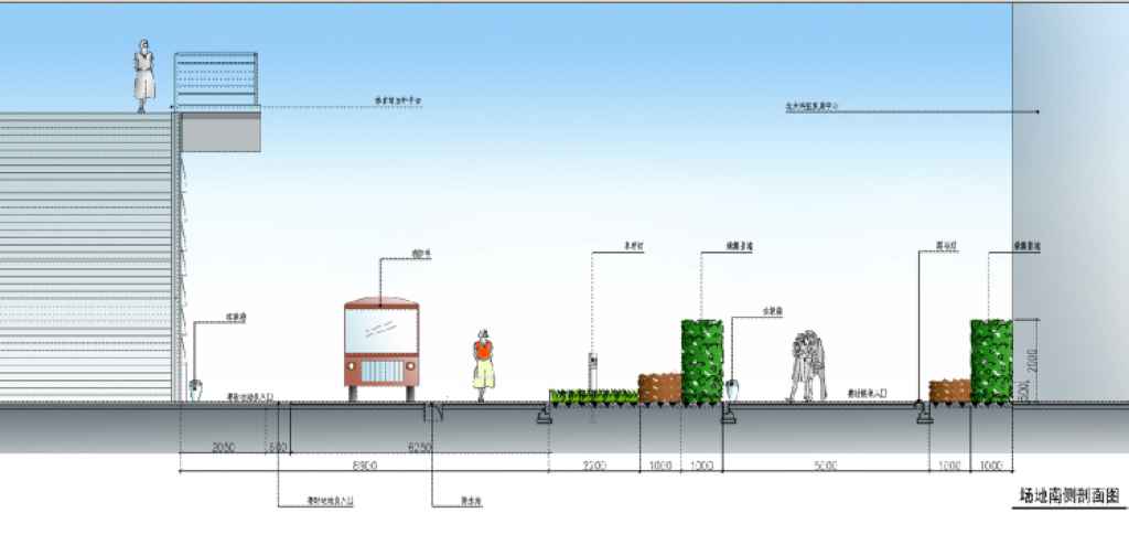 場(chǎng)地南側(cè)剖面圖: ![]()