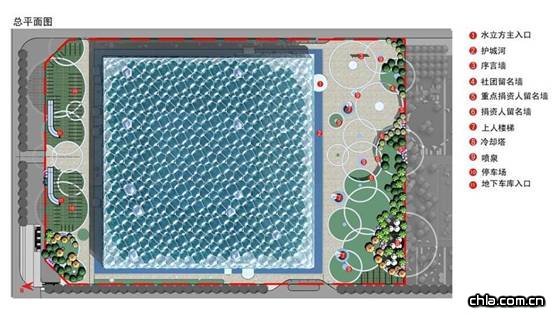 相關(guān)鏈接: 周圍環(huán)境: 國家游泳中心位于奧運公園中心軸線區(qū)以西,與國家體育場——鳥巢遙相呼應(yīng),南側(cè)為北頂娘娘廟文化保護建筑,北側(cè)煒國家體育館,因此占據(jù)相當(dāng)重要的地理位置。 水立方景觀創(chuàng)意 國家游泳中心的核心創(chuàng)意為力圖營造一個以“水”為生命的空間,里面容納與水相關(guān)的各種活動,讓人享受水帶來的美和歡樂,水與方相交,其交集“水立方”是國家游泳中心建筑的主體,方擲于水,水滴四濺,滴水蕩出漣漪,形成國家游泳中心室外自然景觀的背景圖案。在此背景圖案之中,水景、草坪、小徑、景亭及其他廣場內(nèi)構(gòu)筑物均遵循單純的圖形幾何圖案造型,并以自然隨機的形式進行分布。 水景是游泳中心室外廣場景觀設(shè)計的中心主題,也是塑造建筑主體邊緣及主要公共入口空間的重要元素,水的特性是虛幻、靈動和可變的,它的顏色、聲音,不同的形態(tài),與光之間的互動效果等共同定義了水本身。我們希望通過國家游泳中心的水景設(shè)計將以上我們對水的理解形象化和藝術(shù)化,與建筑主體“水立方”相呼應(yīng),水立方的水景設(shè)計遵循簡潔、抽象的原則,充分體現(xiàn)水的寧靜和柔美。另一方面,水又是可變的,不定的,狀態(tài)不一、隨外界的感染而呈現(xiàn)不同表情的,在特殊的時段和場合,這些水景將被人為“激活”,呈現(xiàn)另一番歡騰和熱烈的景象。 ![]() 夜景鳥瞰圖 國家游泳中心建筑的水滴形象主要以圓形水池、旱噴泉以及圓形鋪地形成場地上與水相關(guān)的景觀小品。 國家游泳中心捐資人留名弧墻、冷卻塔穿梭于其中,構(gòu)成南廣場活躍的景觀要素。北廣場主要由地下車庫入口及停車場等因素構(gòu)成,滿足功能上的需求。 “護城河圍繞國家游泳中心周圍,既對建筑起到了很好的襯托作用,又避免過分的靠近對建筑主體造成的意外損害。 ![]() ![]() 國家游泳中心捐資人圓夢園景觀設(shè)計說明 圓夢園的設(shè)計將國家游泳中心南部廣場的設(shè)計意念融入其中,使中華圓夢園與整個地塊融為一體。園區(qū)設(shè)計以圓形為母題,與“水立方”的矩形體量相呼應(yīng),運用水珠激蕩起的圓形波紋與水立方交相輝映的象征手法,使“百年奧運,中華圓夢”的主題思想得以體現(xiàn),既反映了東方文化中“天圓地方,天人合一”的人文館與世界觀,也象征中華民族團結(jié)一心的民族精神。入口處的硬質(zhì)鋪地與大面積的綠化景觀相互滲透,水池點綴其中,弧形的留名墻依“波紋”輪廓布置成舒展的平滑曲線,就像在荷葉間穿梭的魚兒,既大氣又生動活潑,使園區(qū)平添了動感,更寓意著海外赤子離不開祖國母親的深刻含義。 留名墻沿著圓形草地與硬質(zhì)鋪裝的交線進行布置,緊鄰環(huán)形的景觀小徑,為觀者提供了方便直接,但與疏散人流不互相干擾的游覽流線。該路徑與入口廣場聯(lián)系緊密,使捐贈人的姓名得以充分的展示。 ![]() 圓夢園效果圖 ![]() 圓夢園夜景效果圖 ![]() 序言墻立面圖 ![]() 效果圖